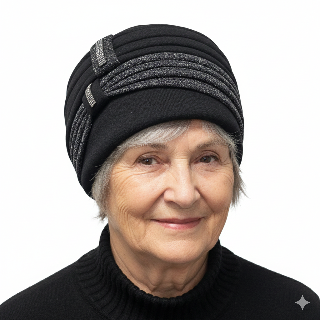 Caciula rafinata de dama Amalia din angora, marime universala, captuseala din polar, culoare negru AMN119