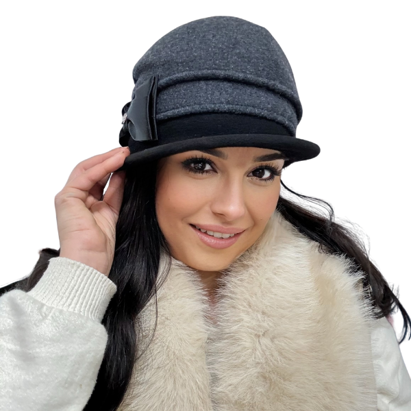 Palarie de dama moderna MIRUNA 100% lana, marime universala D25.05.GRI 02 made Polonia