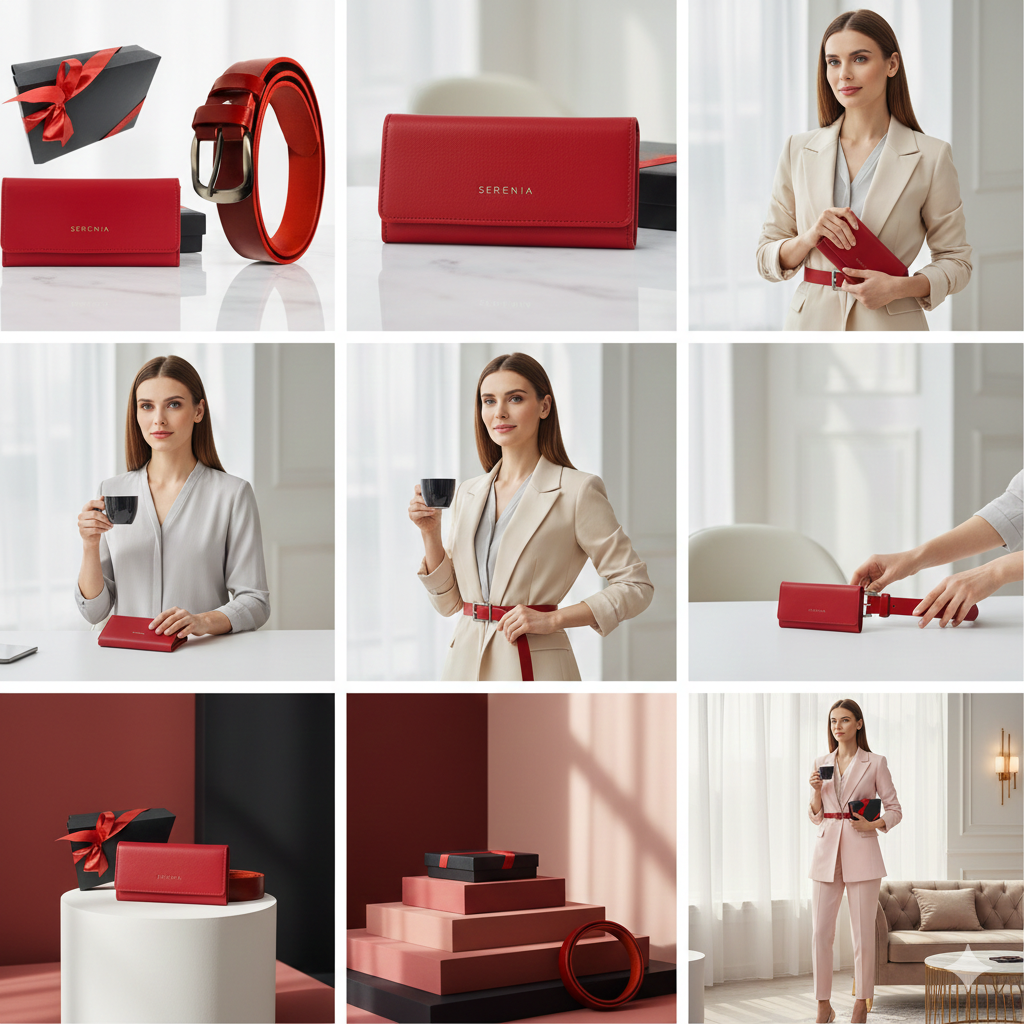 Set cadou GINA pentru femei Portofel si Curea de piele naturala 100% produs in Romania, rosu 3cm ,SRN_ALCR03