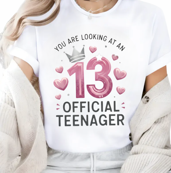 Transformă aniversarea de 13 ani într-un moment special cu un tricou personalizat care spune clar: Oficial adolescent! 💫