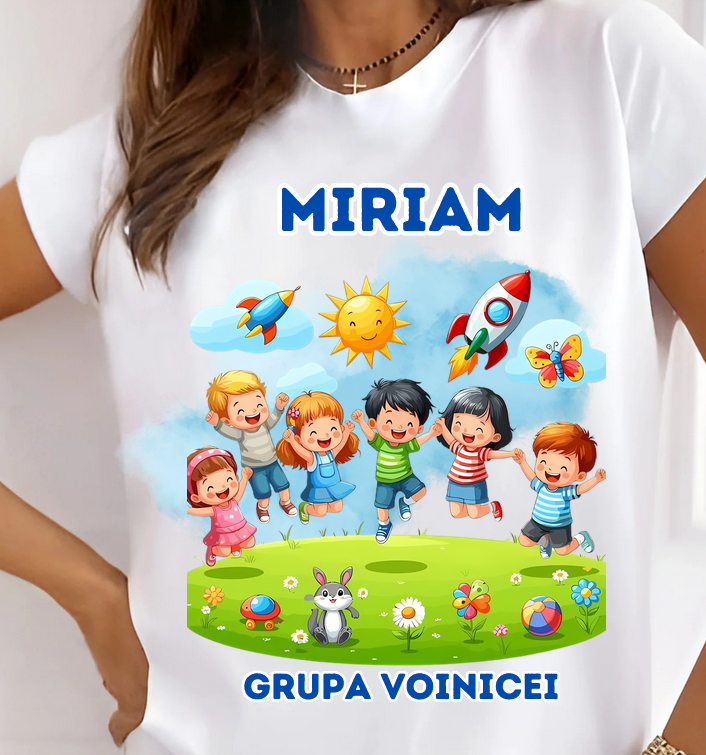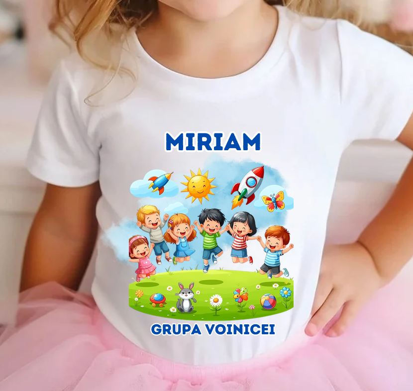 4. Personalizare Disponibilă: Dacă dorești să adaugi un plus de unicitate, acest tricou poate fi personalizat cu numele copilului sau cu alte detalii speciale. Astfel, vei transforma un tricou deja adorabil într-unul cu adevărat unic și personal, care va fi prețuit și purtat cu mândrie.