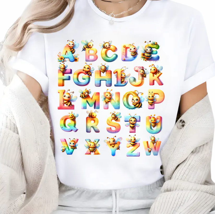 Alege acum tricourile „Albinuțele – Alfabet Curcubeu” și oferă grupei tale un look memorabil și plin de viață.