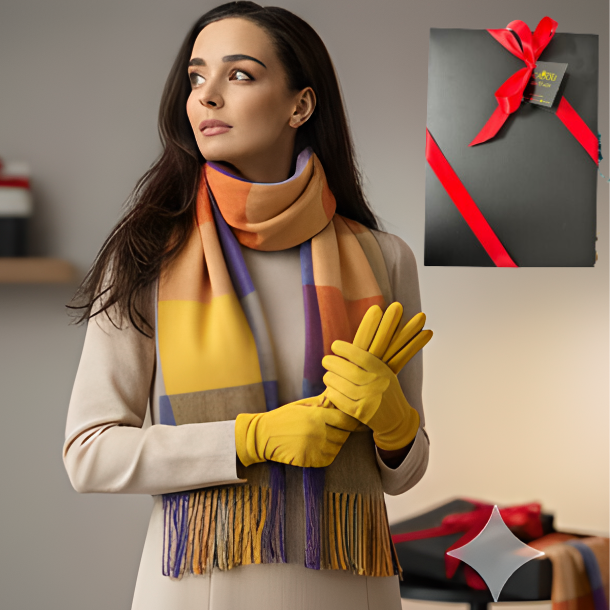 e-CADOU Cadoul perfect de Crăciun - set 2in1 cu manusi si esarfa carouri femei y1-110 multicolor