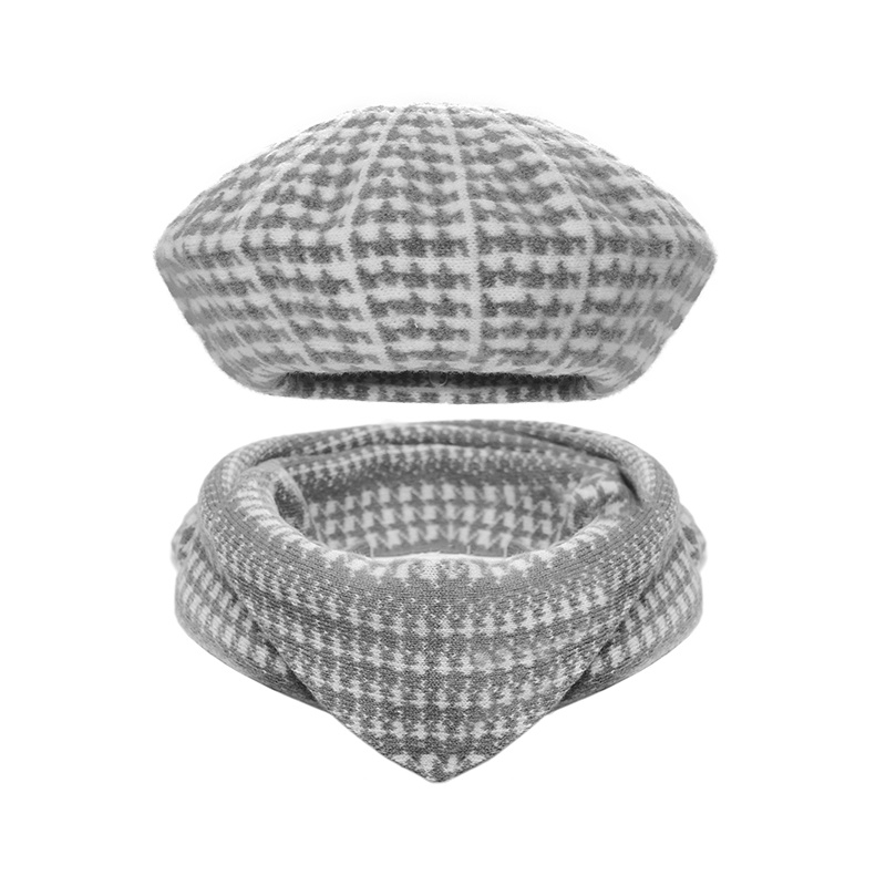Caciula rafinata de dama cu fular asortat din in fire calduroase si placute la atingere