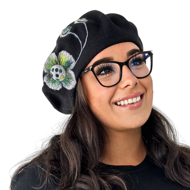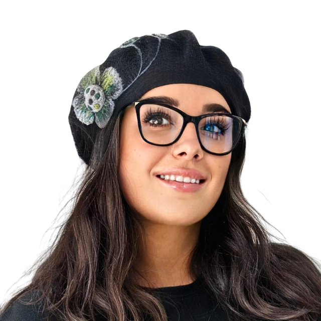 Caciula de dama stil bereta neagra 100% lana, marime universala BM22.03, Polonia