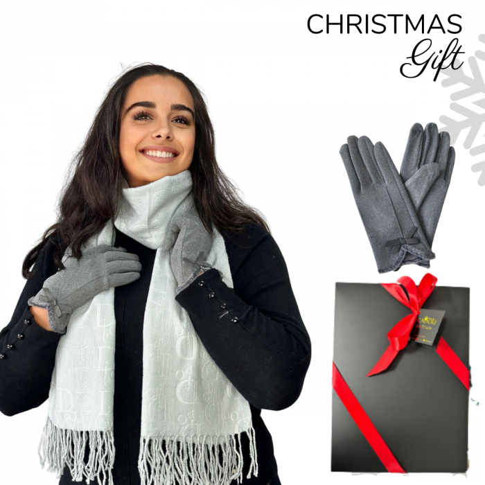 Cadoul perfect de Crăciun - set 2in1 cu manusi si esarfa femei C5755 gri
