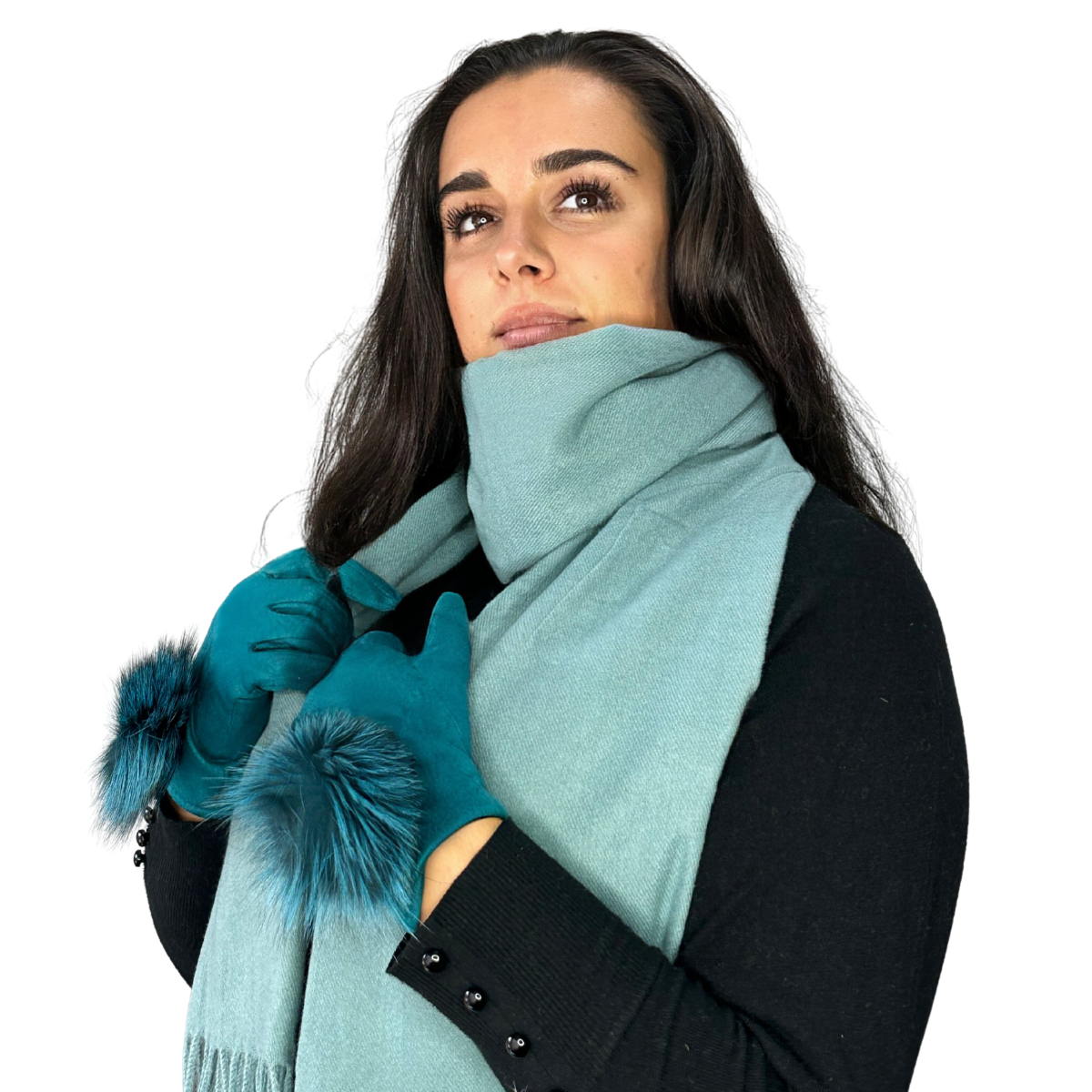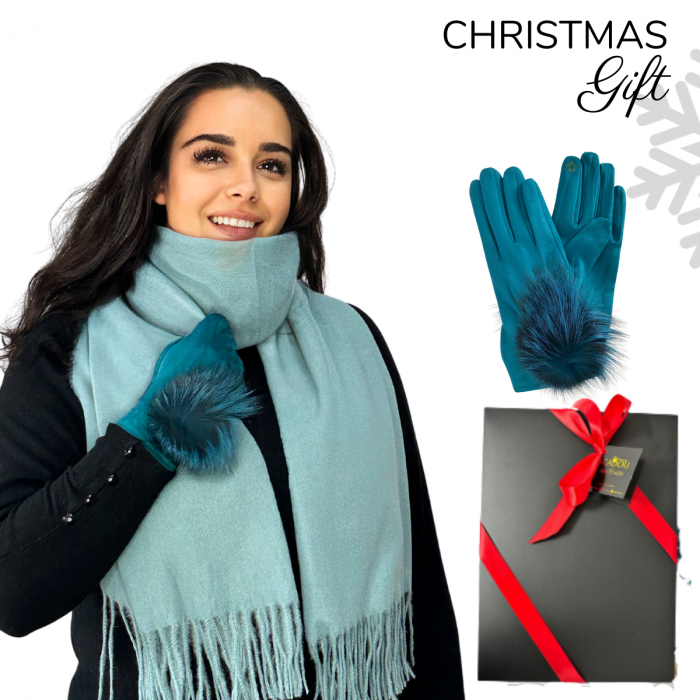 Cadoul perfect de Crăciun - set 2in1 cu manusi si esarfa pentru femei, 1-5701 turquaz