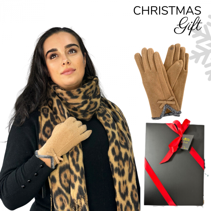 Cadoul perfect de Crăciun - set 2in1 cu manusi si esarfa pentru femei animal print, 1-892.04