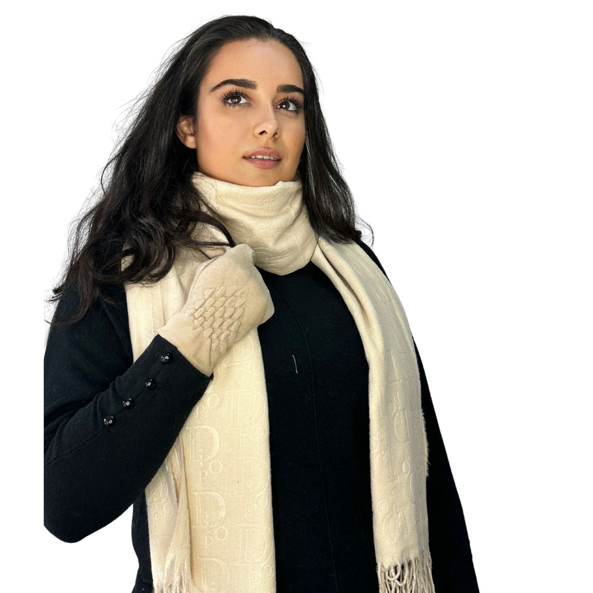 Cadoul perfect de Crăciun - set 2in1 cu manusi si esarfa pentru femei C-5755.02 crem