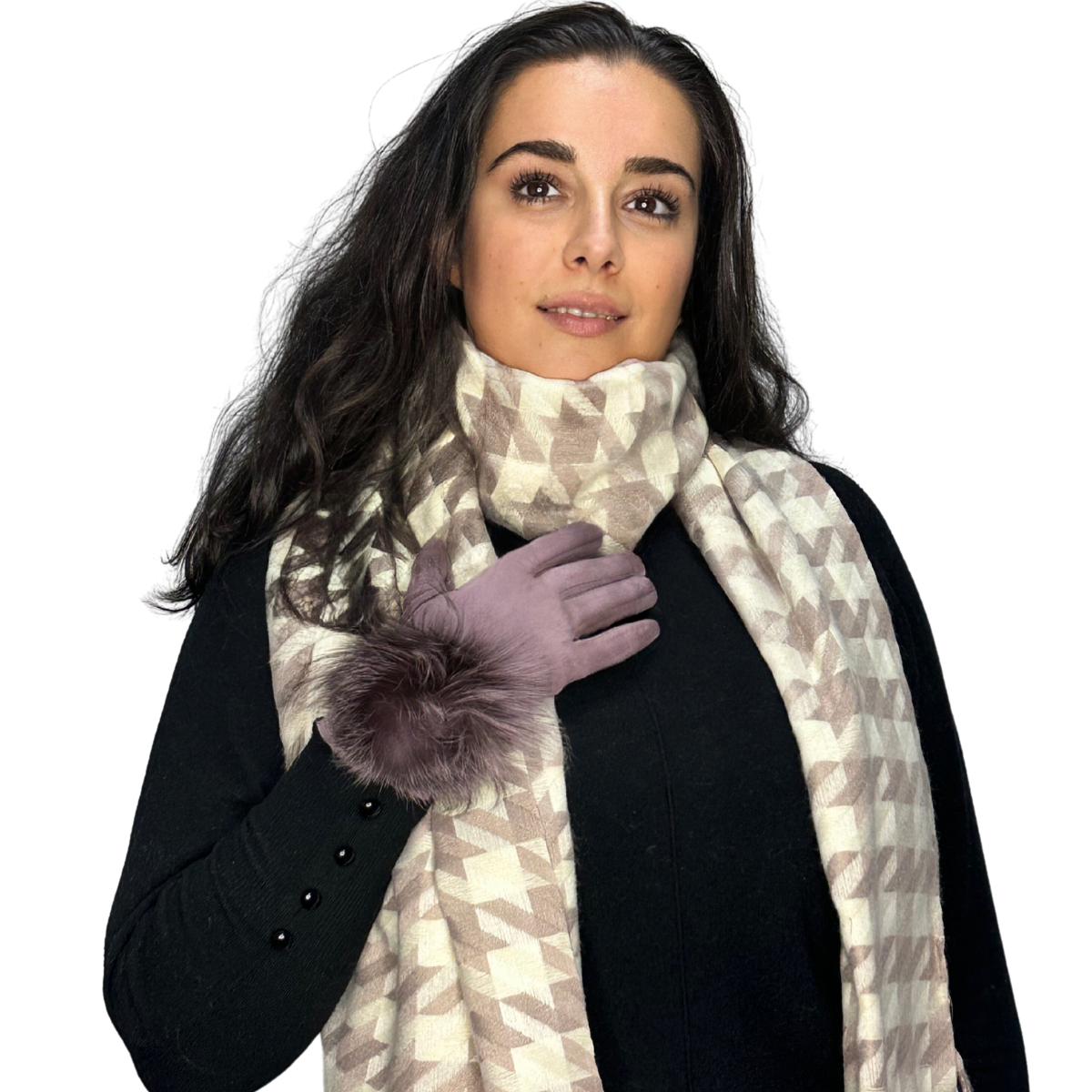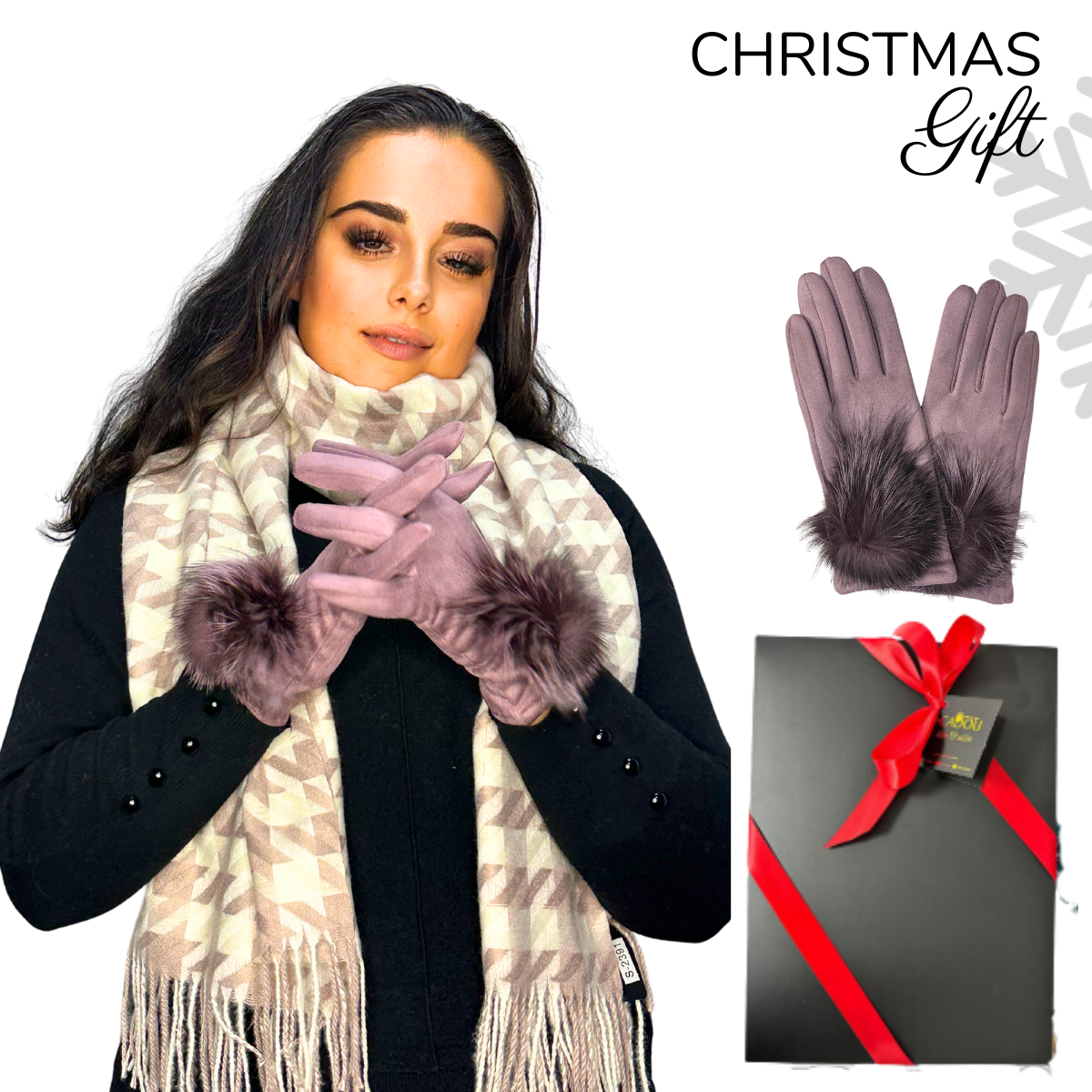 Cadoul perfect de Crăciun - set 2in1 cu manusi si esarfa pentru femei,S-2391.01 plamaniu