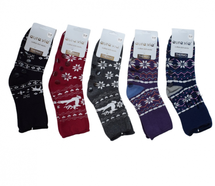 Sosete groase, calduroase si moi, perfecte pentru anotimpul rece sau pentru drumetii pe munte.Pe talpa au un strat antiderapant, antialunecare