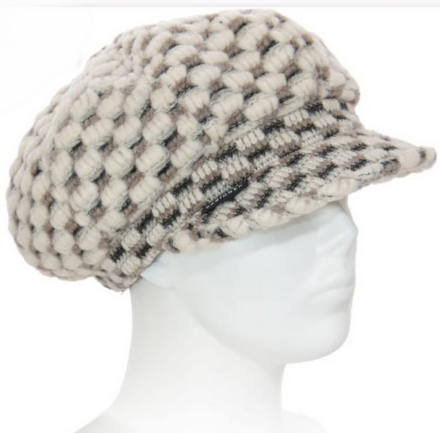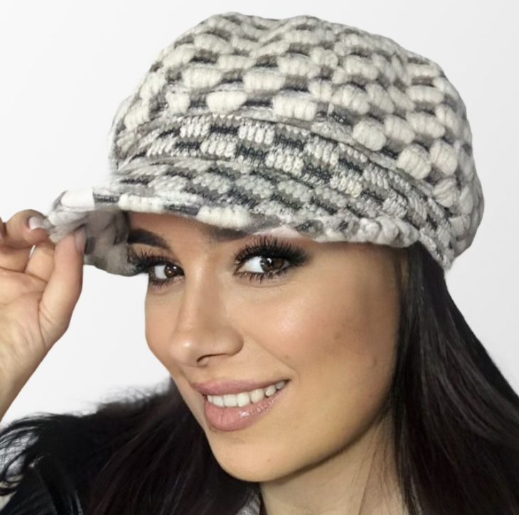 Caciula rafinata de dama din in fire calduroase si placute la atingere, nuante combinate de crem/ bej/ maro/ gri