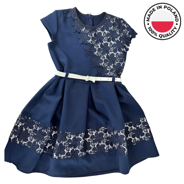 Sarafan scolar cu dantela pentru fete, model elegant cu pliuri, bleumarin, productie Polonia, SP104