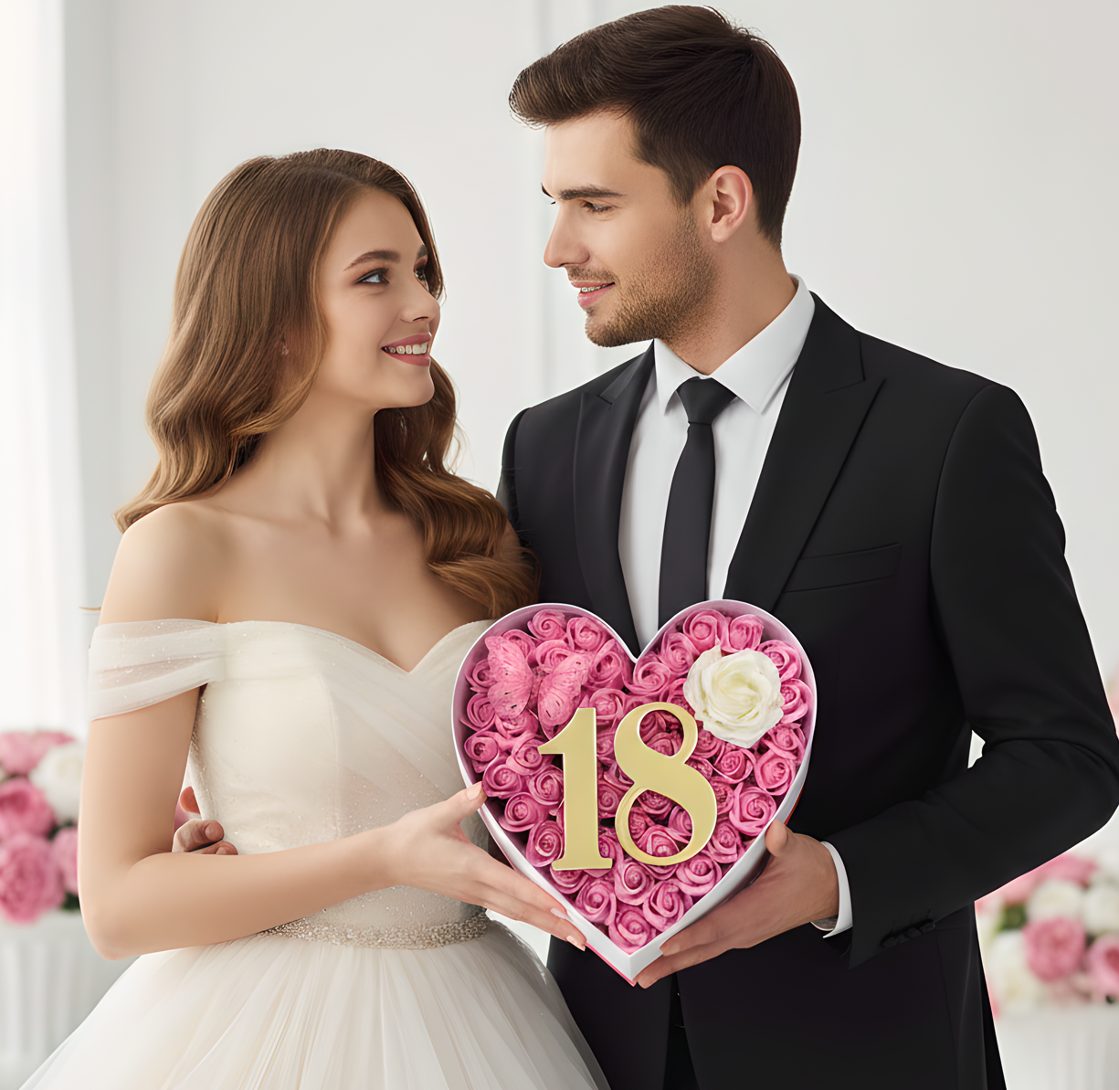 Continut pachet: trandafiri sapun, cocolata, 18ani