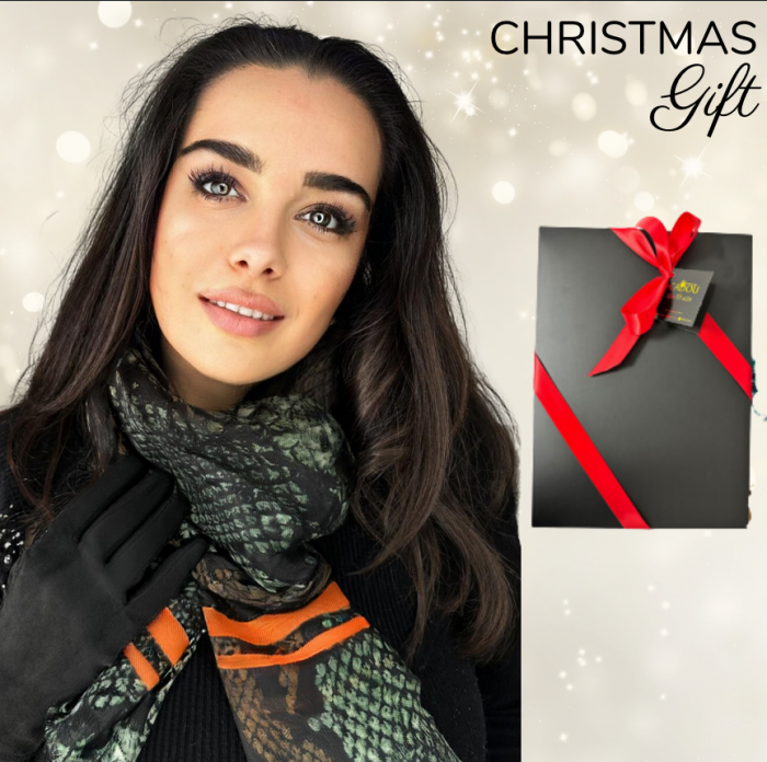 Cadoul perfect de Craciun set 2in1 cu manusi si esarfa animal print verde BF-2013