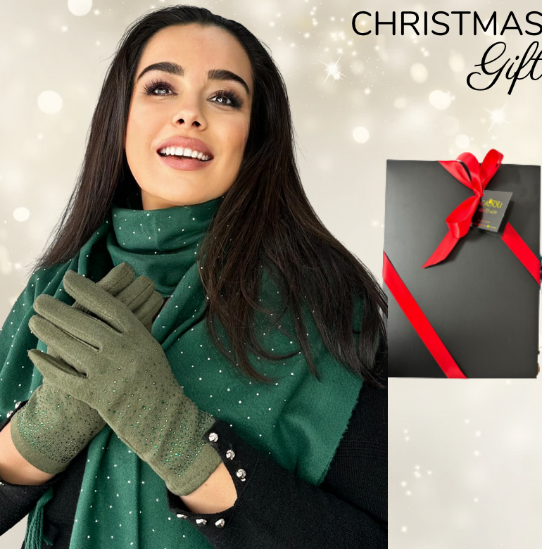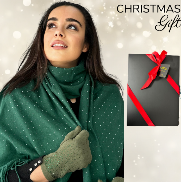 Cadoul perfect de Craciun set 2in1 cu manusi si esarfa DIAMOND femei D50314 verde