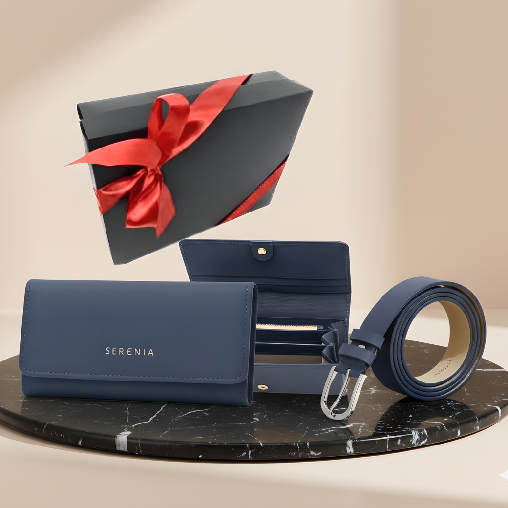 Set cadou femei Portofel si Curea de piele naturala 100% produs in Romania, albastru 3cm ,SRN_ALCB03