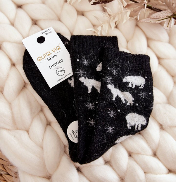 Sosete de dama, thermo din lana, tematica de craciun, set 3 perechi, TNV6915, marime 35-38